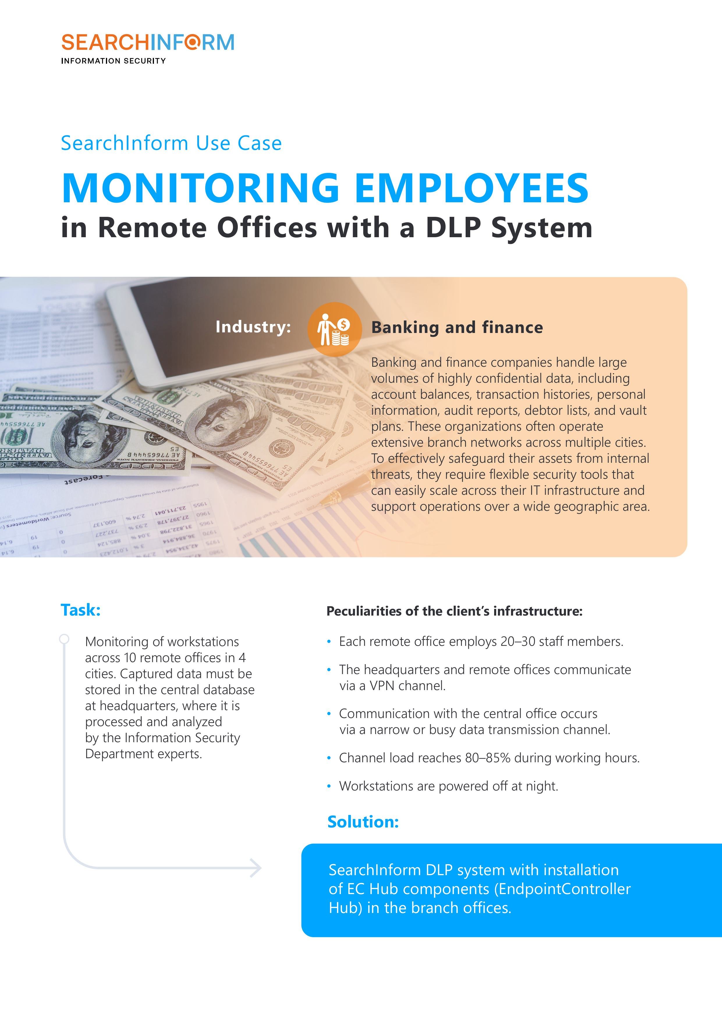 Learn how a financial organization with 1,500 employees across 10 branches built an easy-to-manage, centralized data protection system using SearchInform DLP with EC Hub.